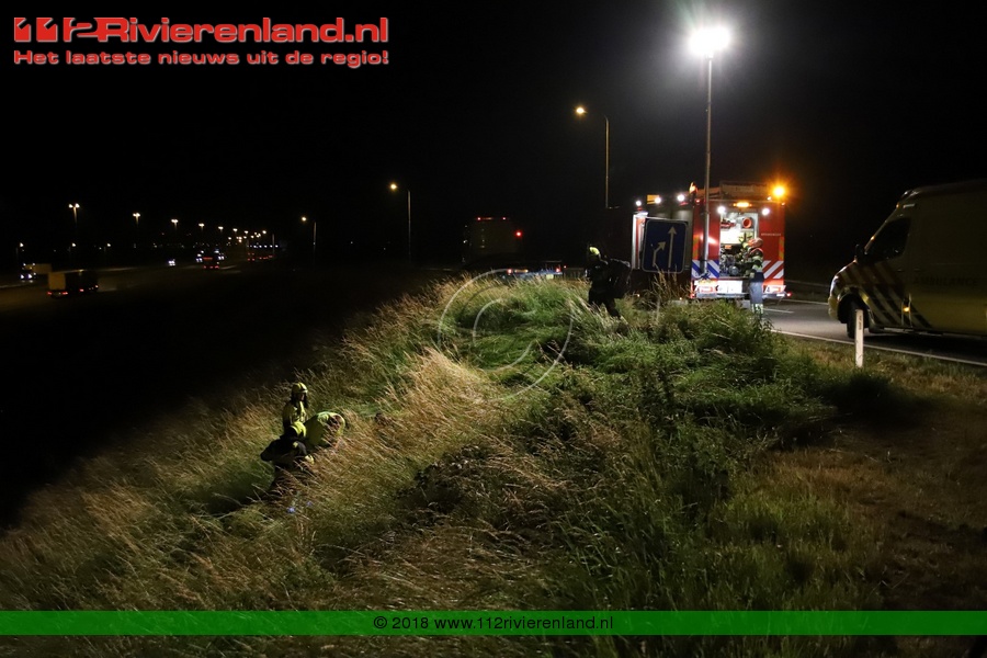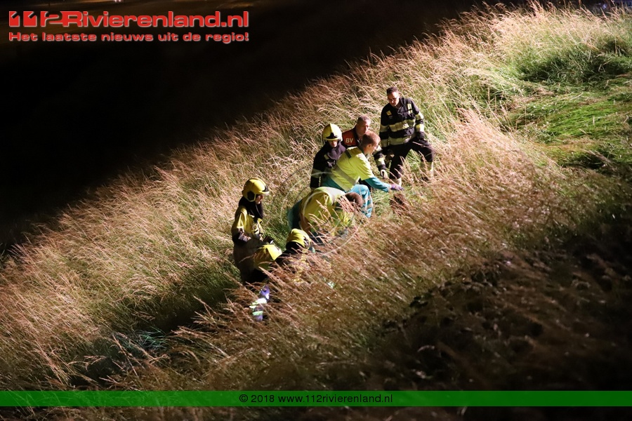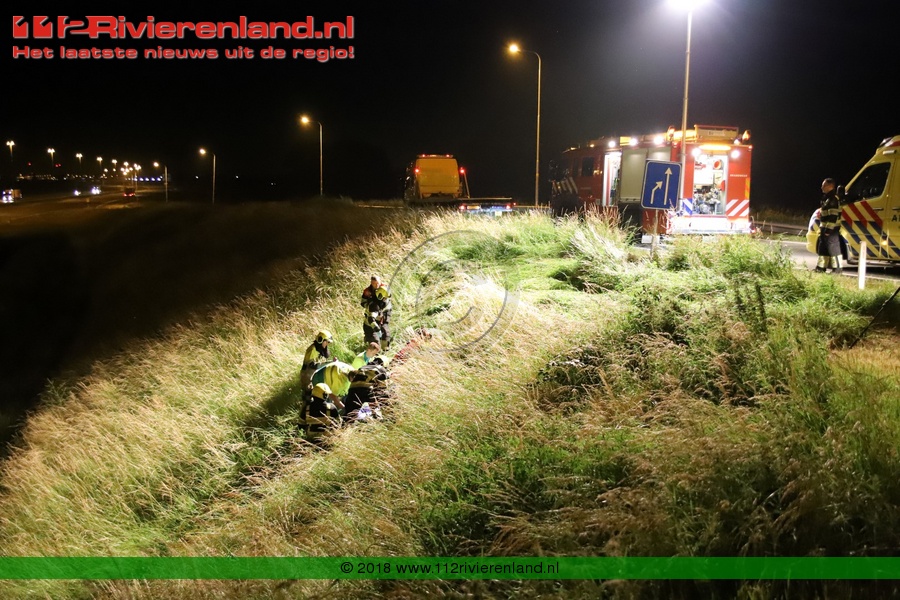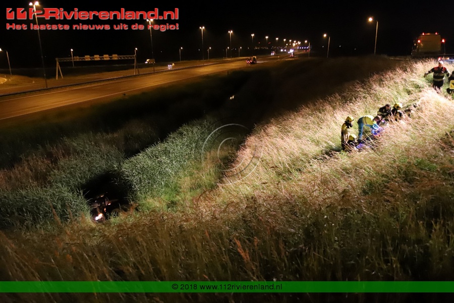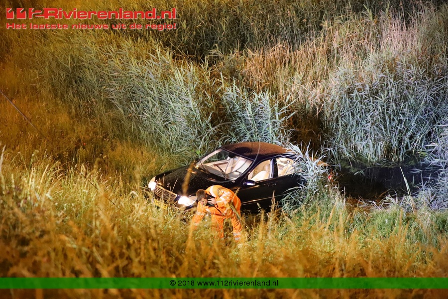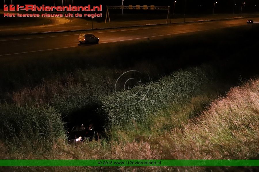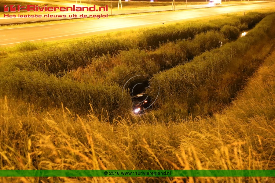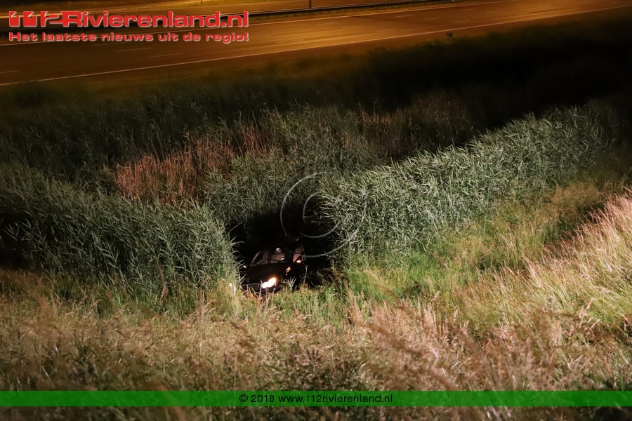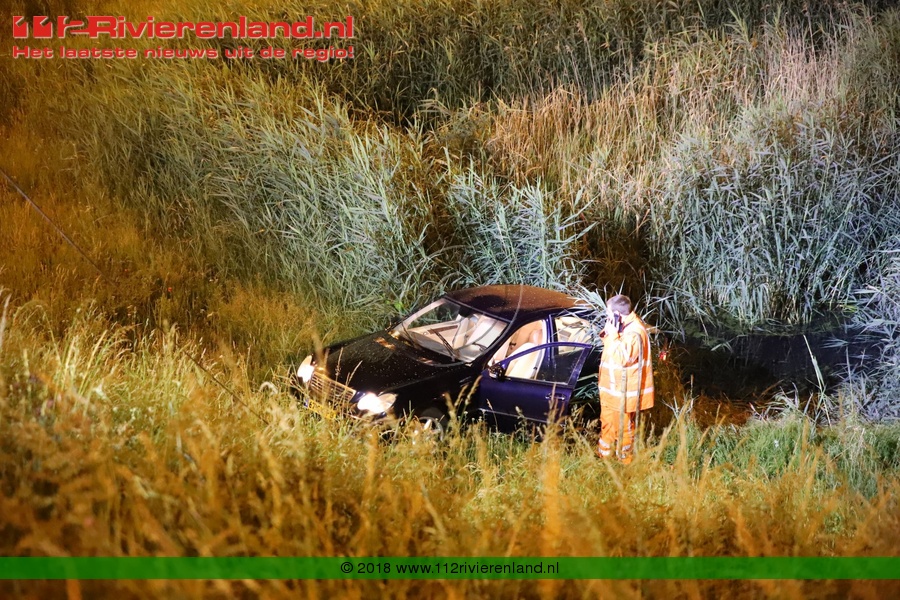 Culemborg - Auto glijdt van talud en belandt in de sloot