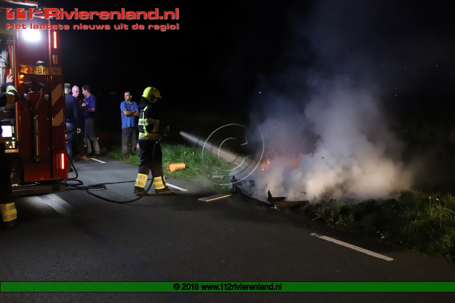 Kapel-Avezaath - Bankstellen in brand gestoken langs slootkant