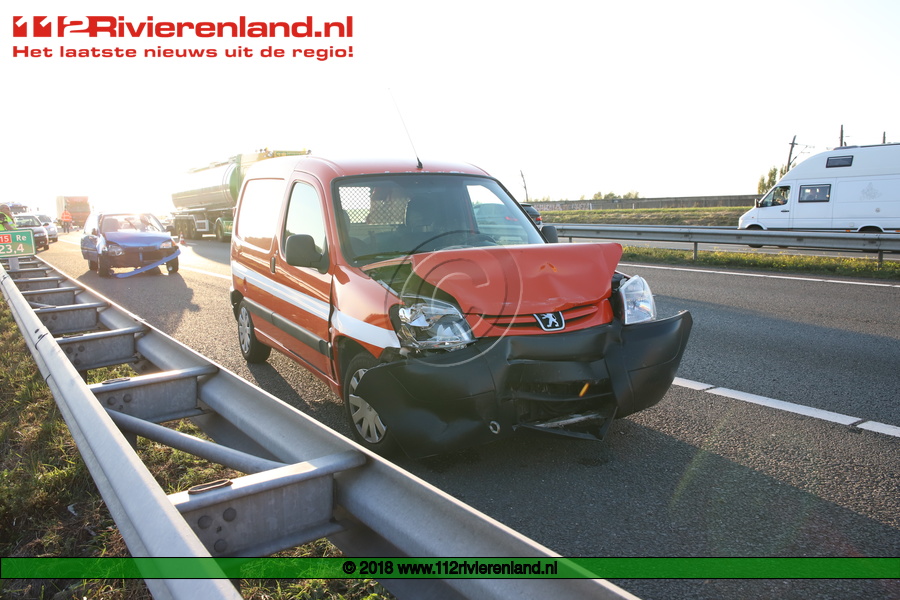 Wadenoijen - Twee auto's zwaar beschadigd op A15