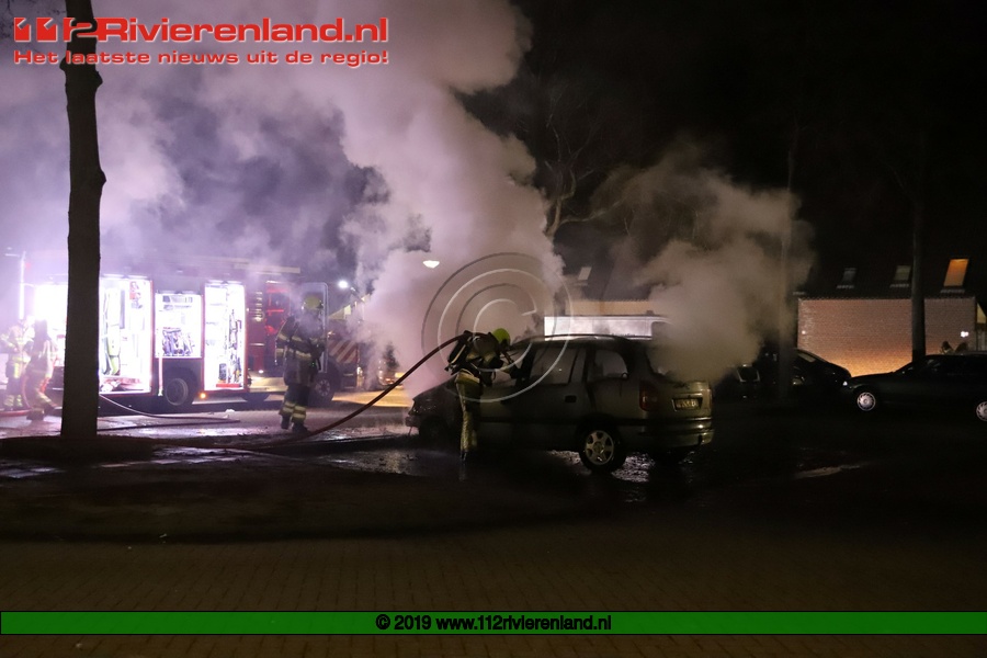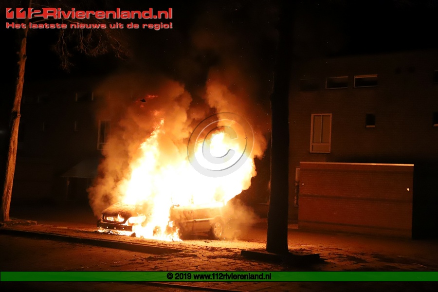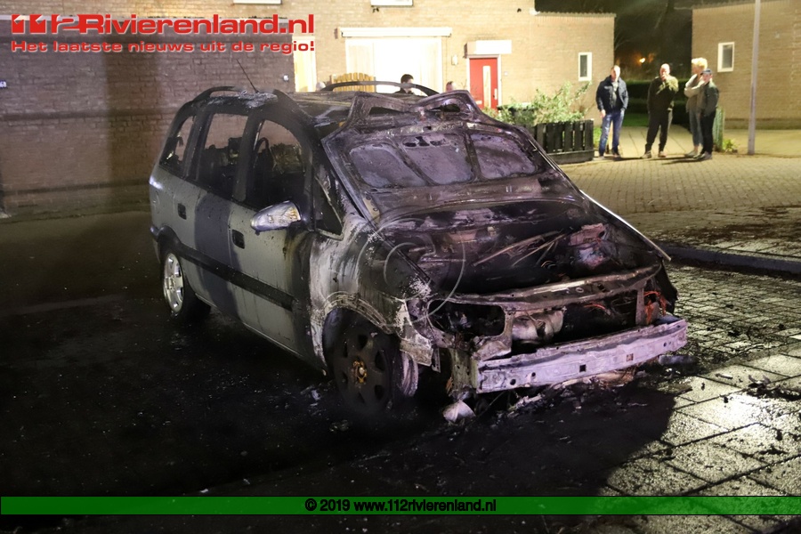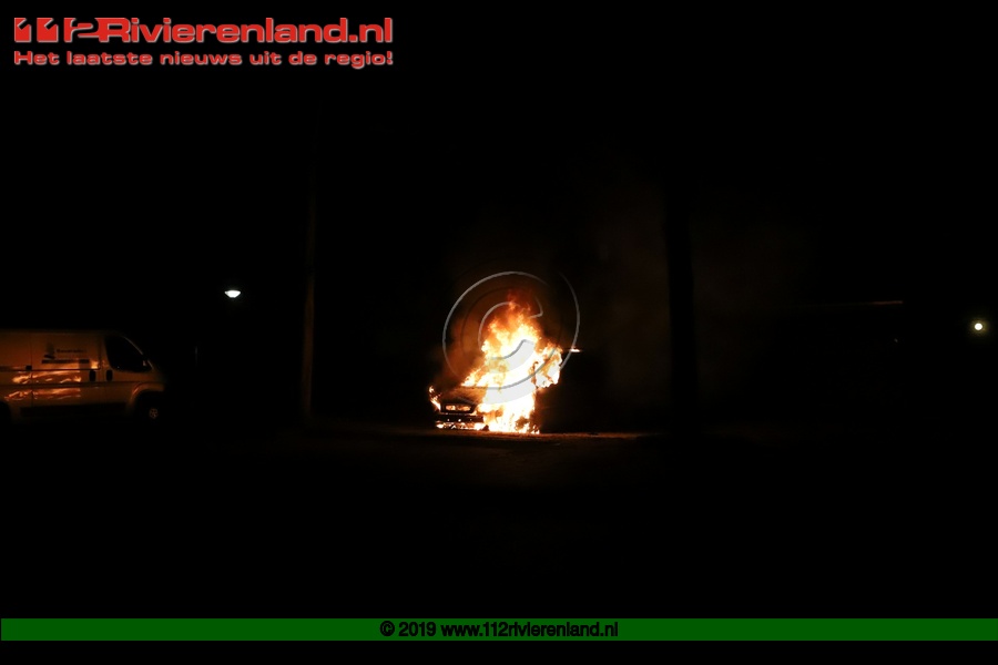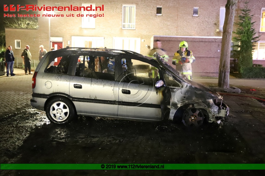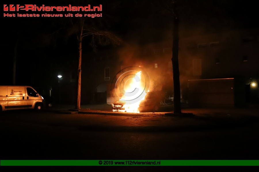 Tiel - Auto brandt volledig uit op de Piet Mondriaanstraat