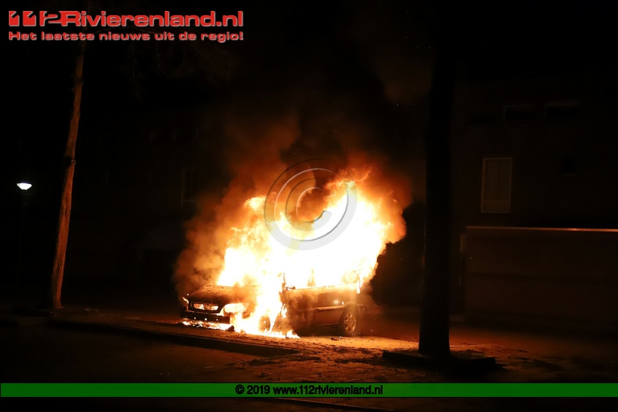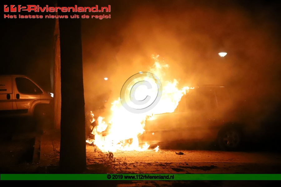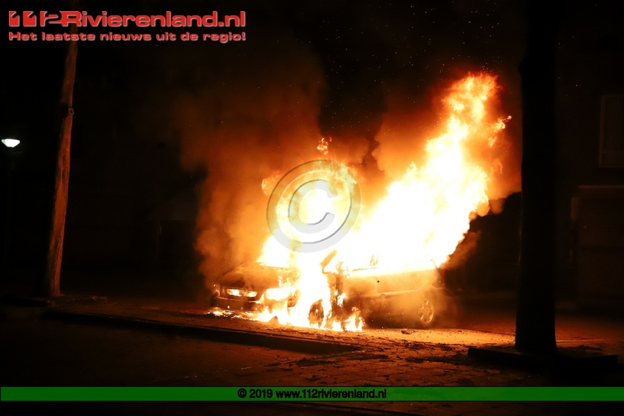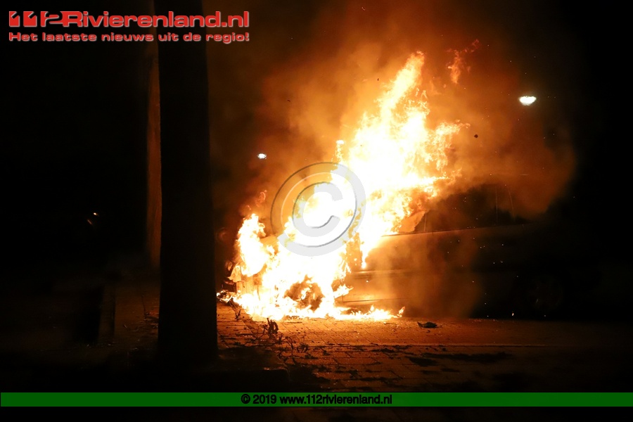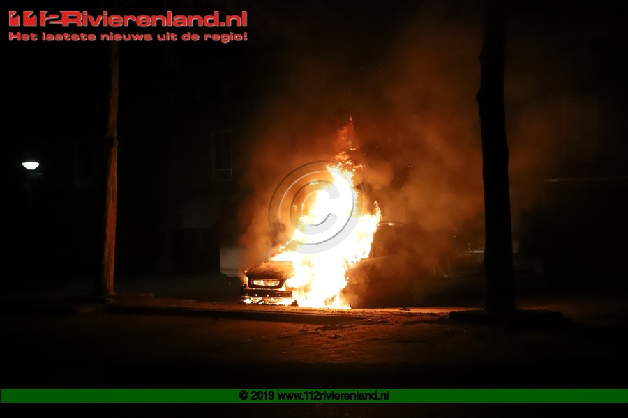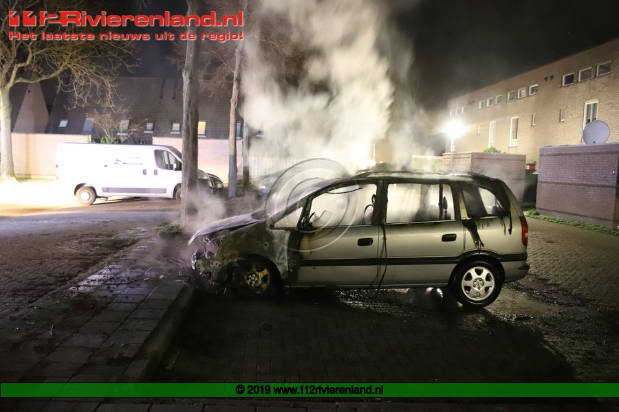 Tiel - Auto brandt volledig uit op de Piet Mondriaanstraat