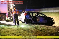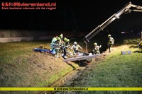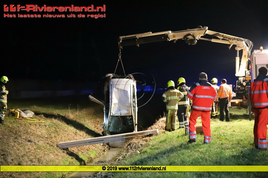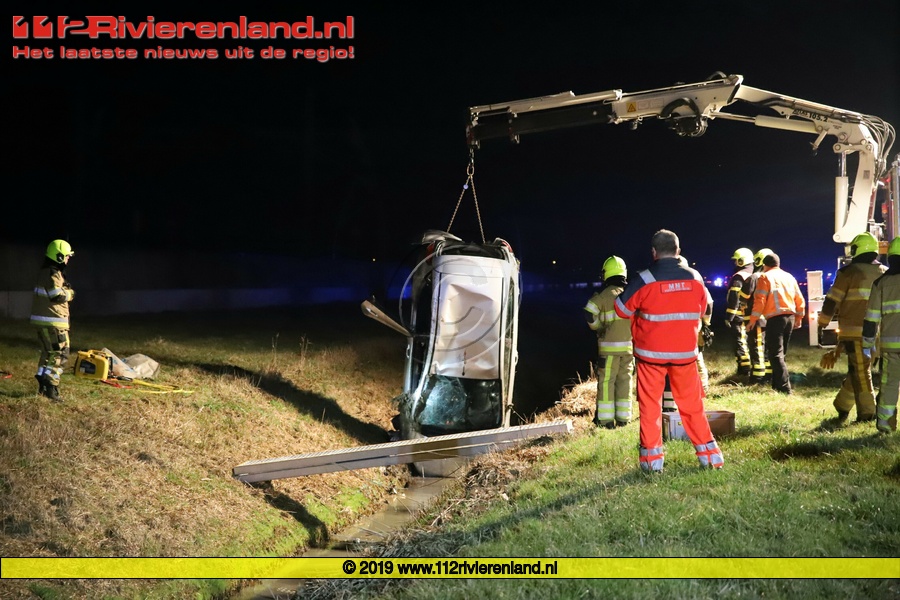 Tiel - Auto belandt op de kop in de sloot langs de A15