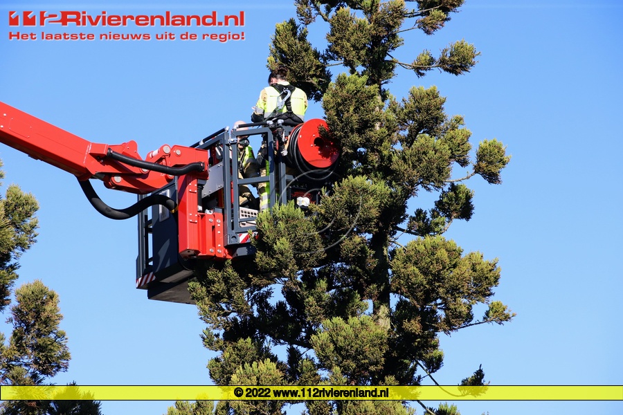 Tiel - Brandweer op Paasochtend druk met kat in de boom