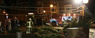 Geldermalsen - Kerstbomen in de brand op het marktplein