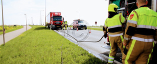 Ochten - Remmen lopen vast van vrachtwagen en brandweer blust beginnende brand 21 apr. 22 19:00 4 foto's