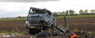 Buurmalsen - Ravage na aanrijding tussen vrachtauto en personenauto
