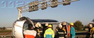 Zaltbommel - Auto op de vangrail na aanrijding op de A2
