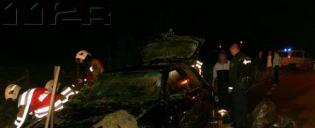 Culemborg - Auto op zijn kant na aanrijding Erasmusweg Textielweg