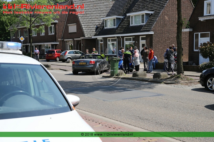 Op de Nieuwe Tielseweg draaide de auto een oprit op en raakte hierbij een man op een scooter die op het fietspad reed. Deze kwam ten val en is gecontroleerd door de ambulancedienst.