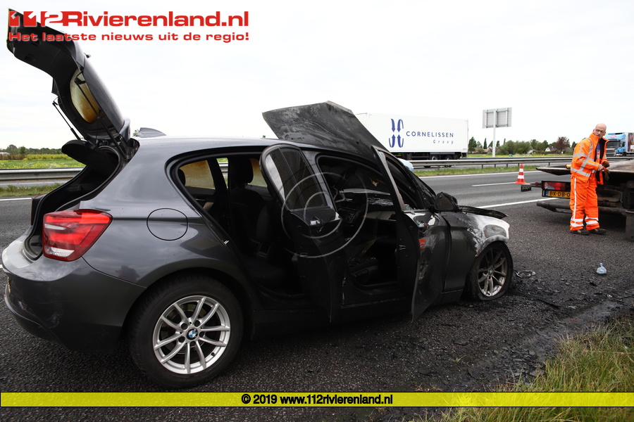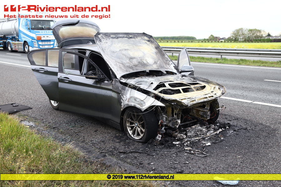 Donderdagmorgen rond 10:30 werd een autobrand gemeld op de A15 tussen Meteren en Deil richting Rotterdam. Hierbij is een auto in vlammen opgegaan.