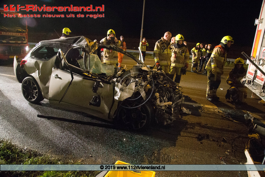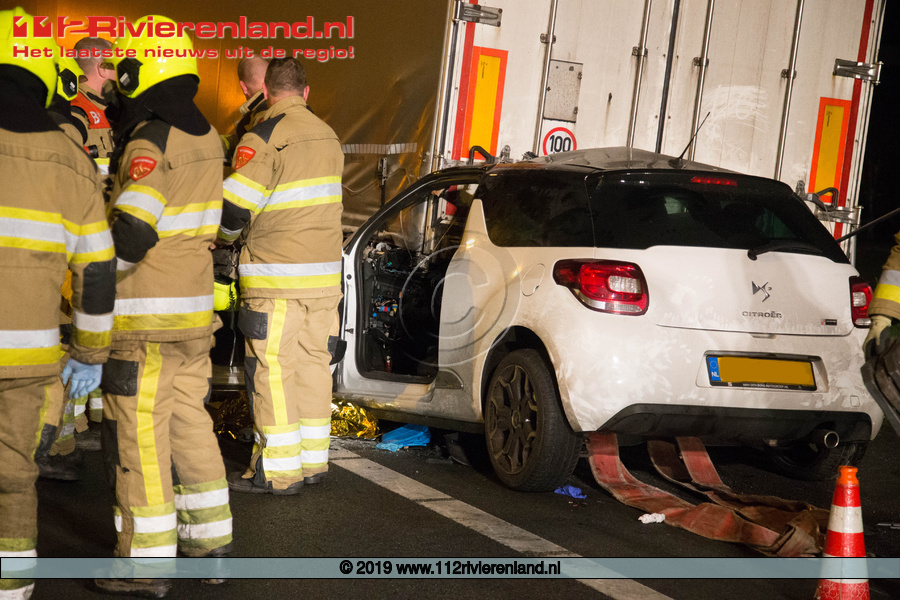 Enspijk - Auto onder vrachtwagen op de A2