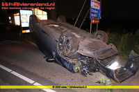 Door de klap reed de bestuurder vervolgens een lantaarnpaal uit de grond en belandde ondersteboven op het wegdek. De bestuurder is met onbekende verwondingen overgebracht naar het ziekenhuis.