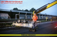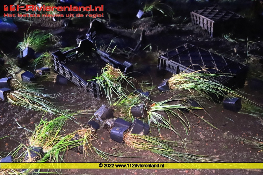 Tiel - Aanhanger met siergras belandt op de kop op de A15