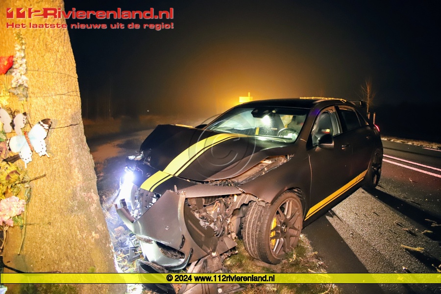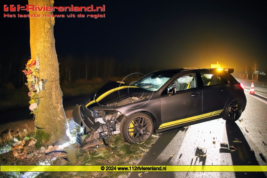Zaterdag om 00.35 uur werd er een ongeval gemeld op de N833 - Rijksstraatweg. Het ongeval vond plaats net voorbij het kruispunt met de Kruisweg. De bestuurder van een personenauto die richting Culemborg reed, verloor de macht over het stuur en knalde tegen een boom.