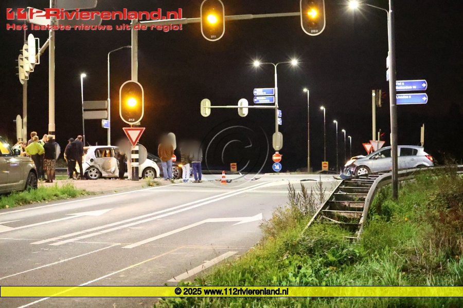 Vrijdag om 22..45 uur werd er een ongeval gemeld op de Prins Willem-Alexanderweg . Op het viaduct over de A15 botsten twee personenauto's tegen elkaar.