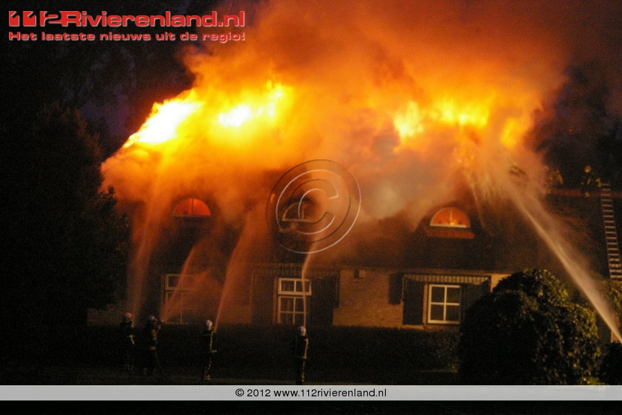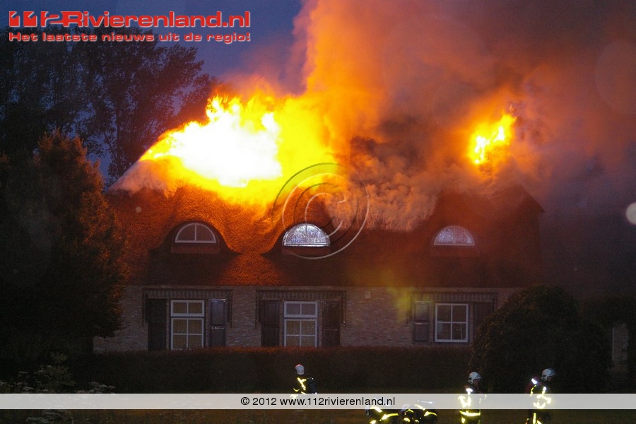 De brandweer is met groot materieel uitgerukt voor een brand bij een woonboerderij aan de Waalbanddijk te Varik.