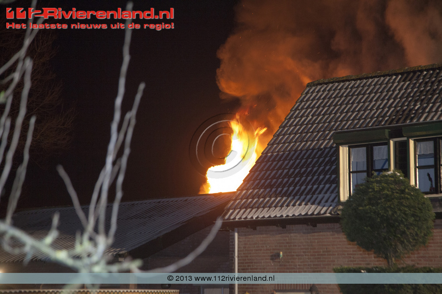 De brandweer zette groot materieel in, om te vorkomen dat de brand over zou slaan naar de woning.