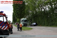 Op de Spoorstraat in Echteld is vanmiddag een automobilist om het leven gekomen na een frontale botsing met een vrachtwagen. Het slachtoffer overleed terplekke aan zijn verwondingen.
