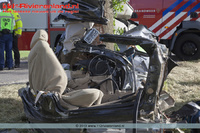 Door de klap brak de auto in tweeën. Diverse mensen waren getuigen van het ongeval. Het slachtoffer overleed ter plaatse.