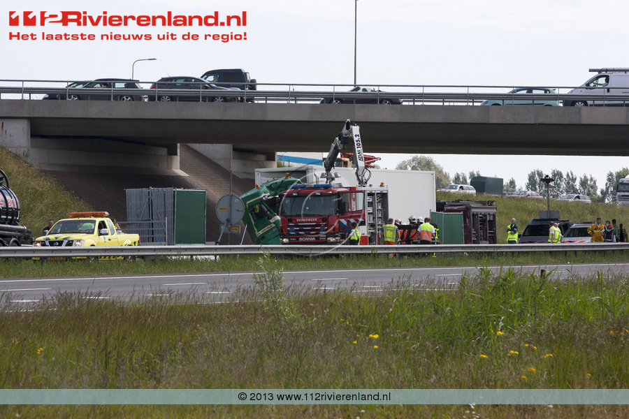 De vrachtwagens reden richting Rotterdam. De voorste vrachtwagen, een tankwagen met zoutzuur, heeft na de botsing korte tijd in geringe mate lading gelekt. Deze lekkage is door de brandweer gestopt. Hulpdiensten zijn op de plaats van aanrijding en kunnen veilig hun werk doen.