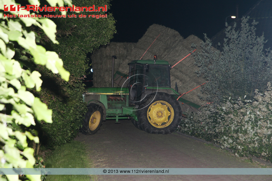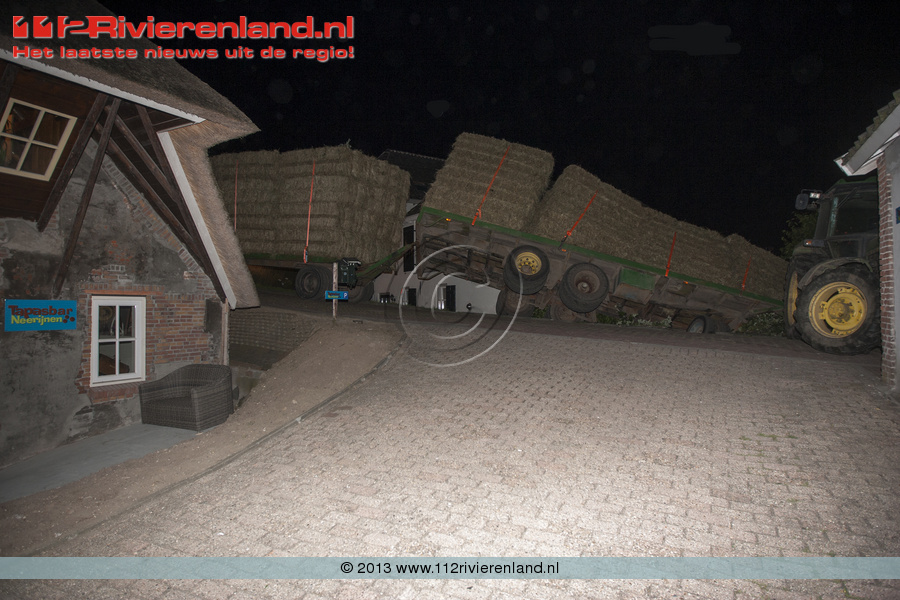 Vanavond net na 22:30 is een tractor met aanhangwagens geladen met hooi van de dijk geraakt en tegen een woning aangekomen.