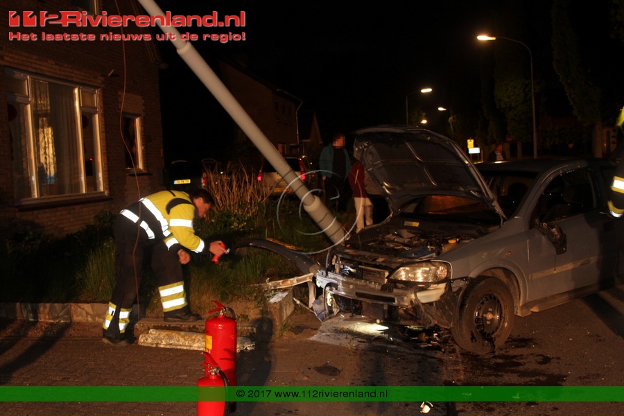 Beneden-Leeuwen - Auto botst tegen lantaarnpaal op Zijveld