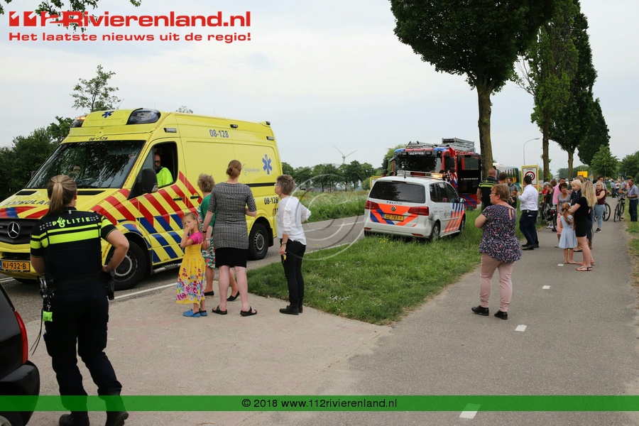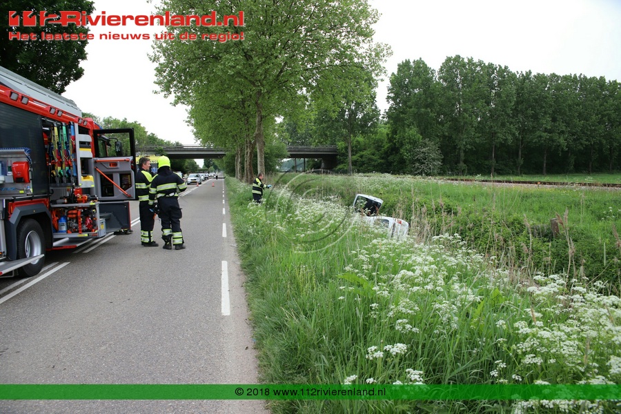 Een auto met aanhanger kwam vanuit de richting Tiel en raakte ter hoogte van de Achterstraat aan de linkerzijde van de weg in de sloot. Met de ambulance is 1 man vervoerd naar het ziekenhuis.