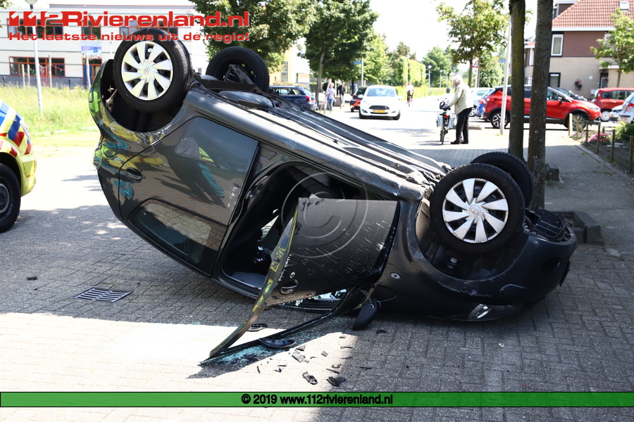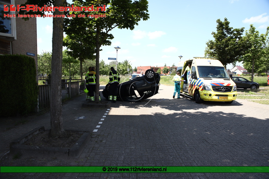 Bij een aanrijding tussen twee auto's kwam een auto op de kop tot stilstand. Hierbij raakte de bestuurster gewond en is overgebracht naar het ziekenhuis.