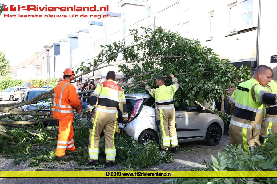 Tiel - Deel van boom valt op 2 auto's