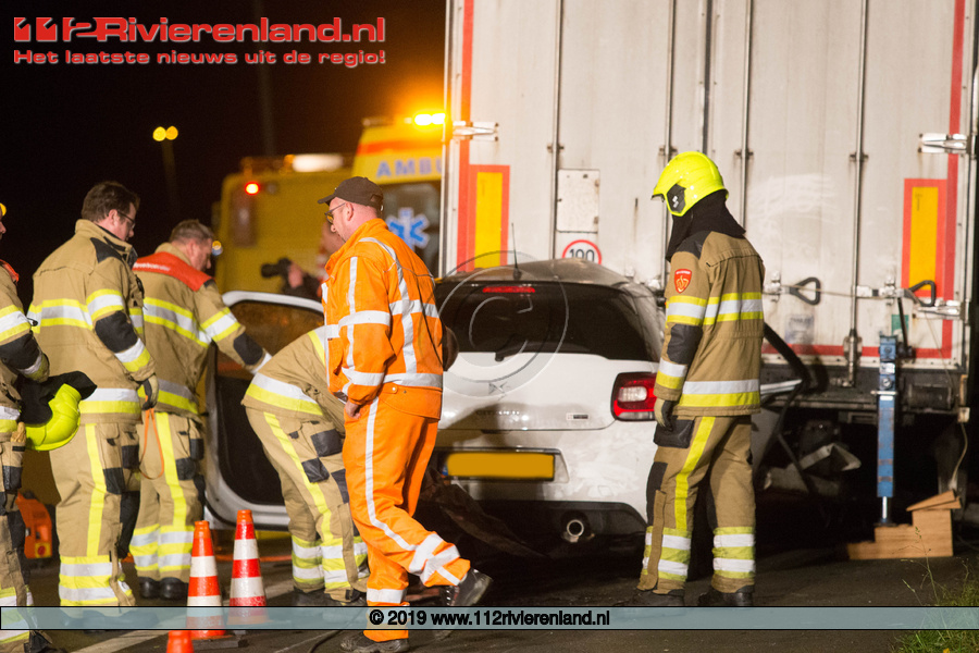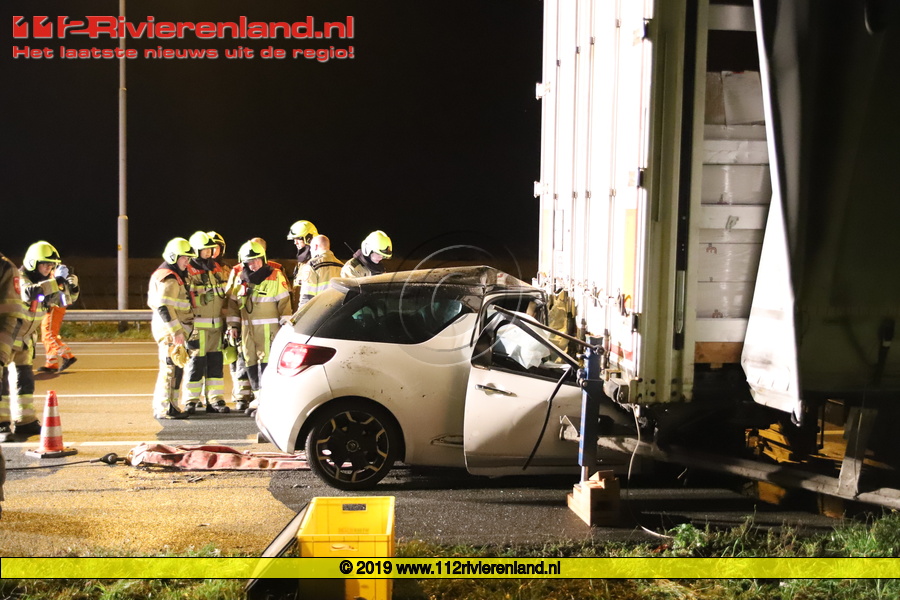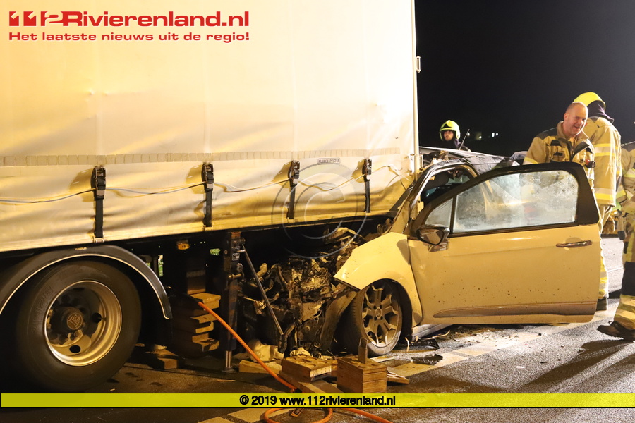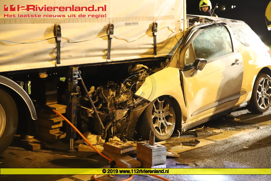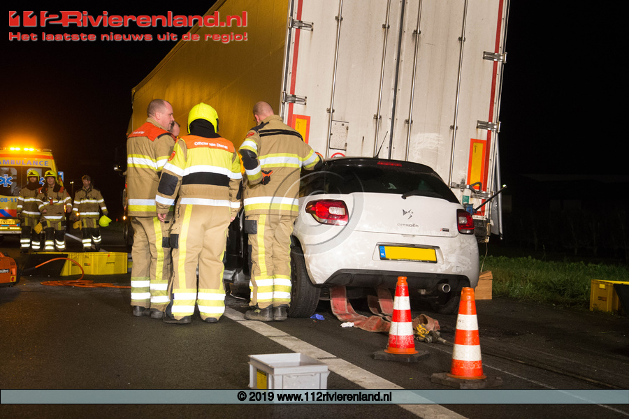 Enspijk - Auto onder vrachtwagen op de A2