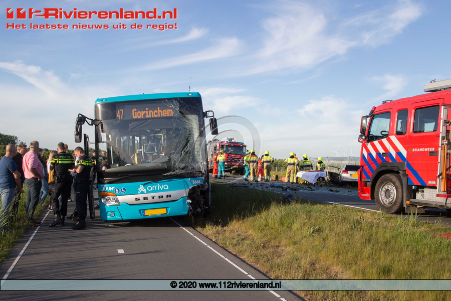 De auto raakte zwaar beschadigd en ook de bus liep aan de voorzijde veel schade op. Er kwamen op het ongeval meerdere ambulances af en ook de traumahelikopter landde vlakbij in een weiland. Bij het ongeval kwam een persoon in de personenauto om het leven.