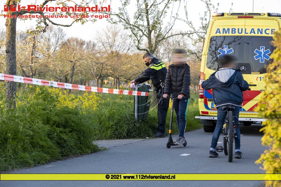 Een jongen heeft een buikwond opgelopen en is met een ambulance naar het ziekenhuis overgebracht. De politie zoekt de dader (zwarte kleding). Weggerend richting Tiel West.