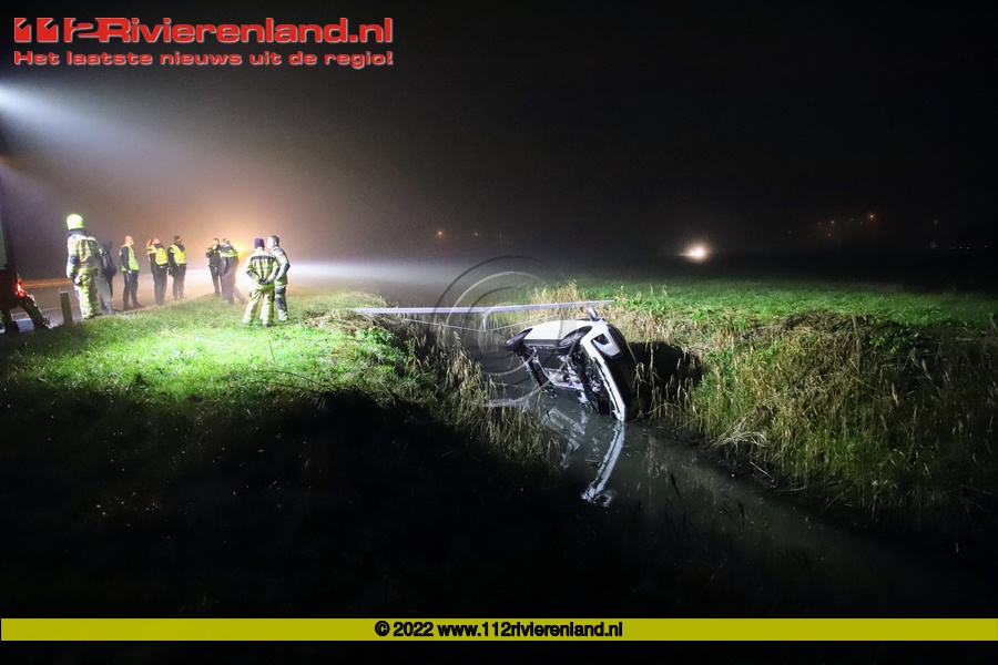 Vrijdag om 02.30 uur werden de hulpdiensten opgeroepen voor een ongeval op de toerit van de A15 bij de afslag Geldermalsen richting Nijmegen. De bestuurder van een personenauto raakte de macht over het stuur kwijt en belandde op de zijkant in de sloot