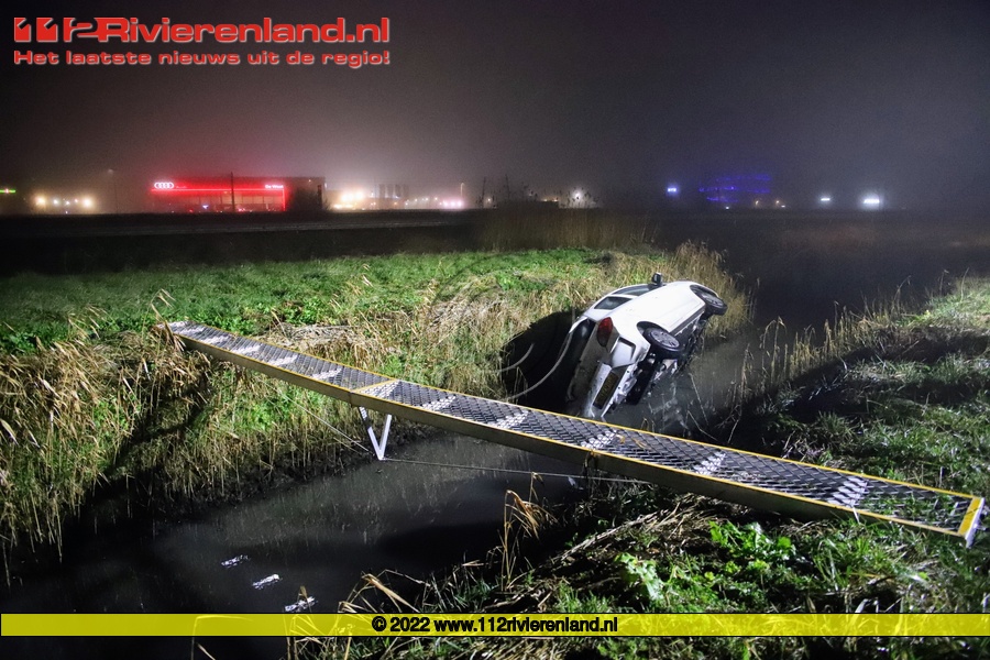 Geldermalsen - Auto raakt te water op de A15