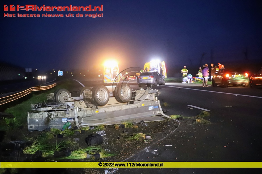 Zaterdag om 07.30 uur werden de hulpdiensten opgeroepen voor een ongeval op de A15 richting Rotterdam.Hierbij botste een auto tegen de achterzijde van een busje met aanhanger. Hierdoor schaarde de aanhangwagen en schoot los.