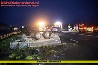 Tiel - Aanhanger met siergras belandt op de kop op de A15