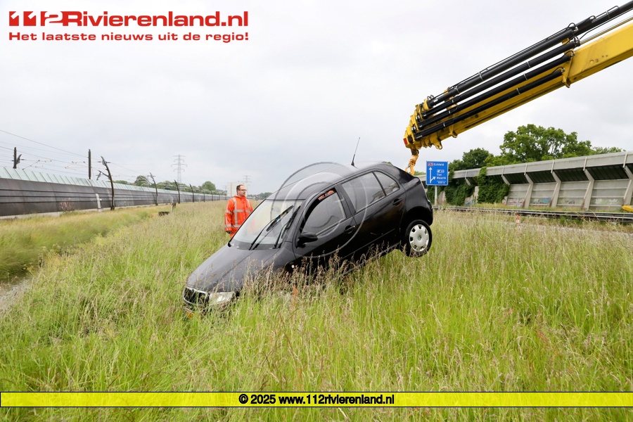 Zondag om 07.05 uur werd er een ongeval gemeld op de A15 richting Rotterdam, tussen de afslag Tiel en Tiel-West. Een getuige zag dat er een auto voor hem bijna de middenvangrail inreed en begon te tollen. Vervolgens via het hoge gras kwam hij met de neus in de sloot terecht.