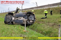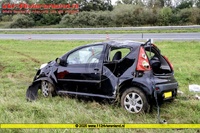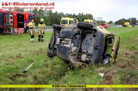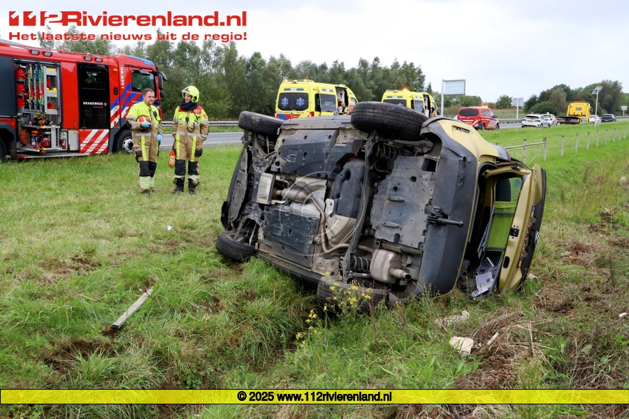 Er bleken twee personenauto's in botsing te zijn gekomen en reden vervolgens de berm in. Eén auto kwam op de zijkant tot stilstand en de bestuurder moest door de brandweer worden bevrijd. De bestuurder van de andere auto kon zelfstandig uitstappen. Beide bestuurders zijn met de ambulance overgebracht naar het ziekenhuis.