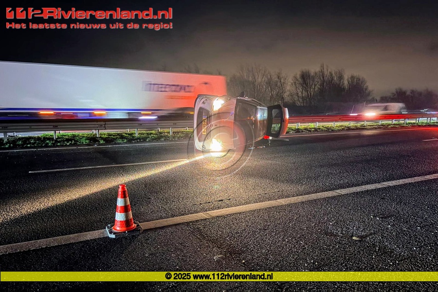 Hierbij kwam een personenauto tegen de vangrail en belandde op de zijkant. De bestuurder kon het voertuig veilig verlaten met hulp van omstanders. Bij het ongeval raakte hij niet gewond. De brandweer kwam ter plaatse en heeft het voertuig veilig gesteld.