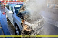 Bij aankomst van de brandweer bleken een personenauto aan de voorzijde volledig in brand te staan op bovenop het spoorwegviaduct.