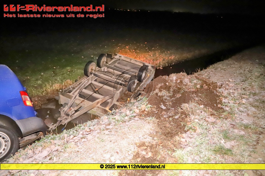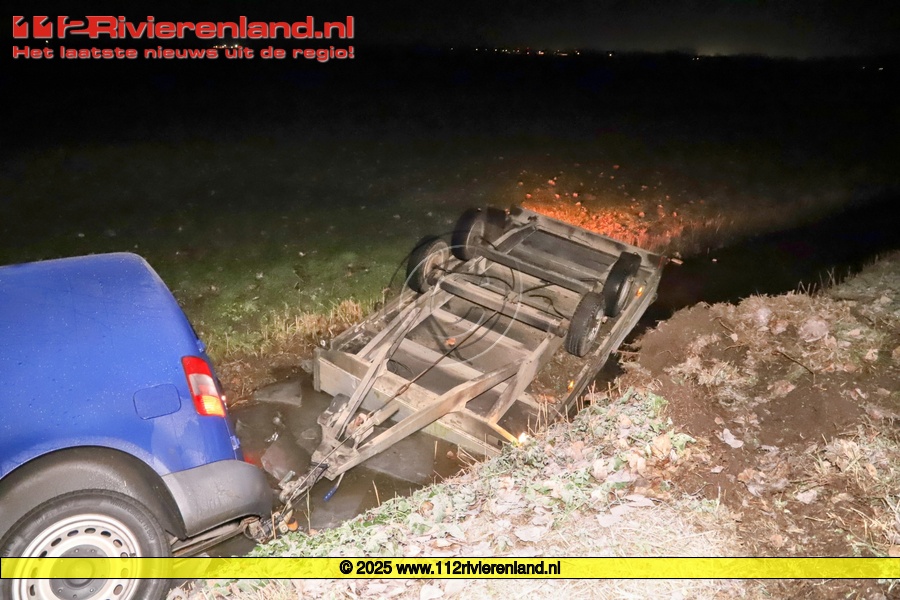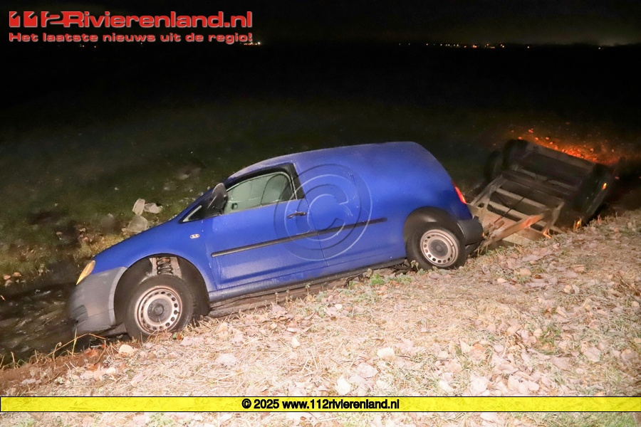 Zoelen - Auto met aanhanger in de sloot