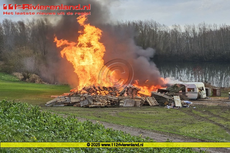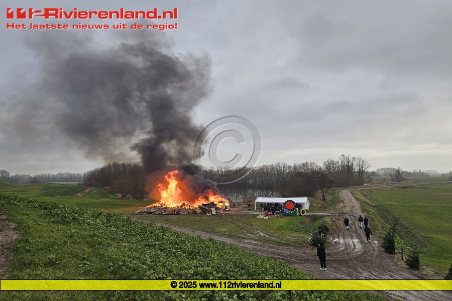 Ophemert - Groot vreugdevuur aan de Waalbandijk
