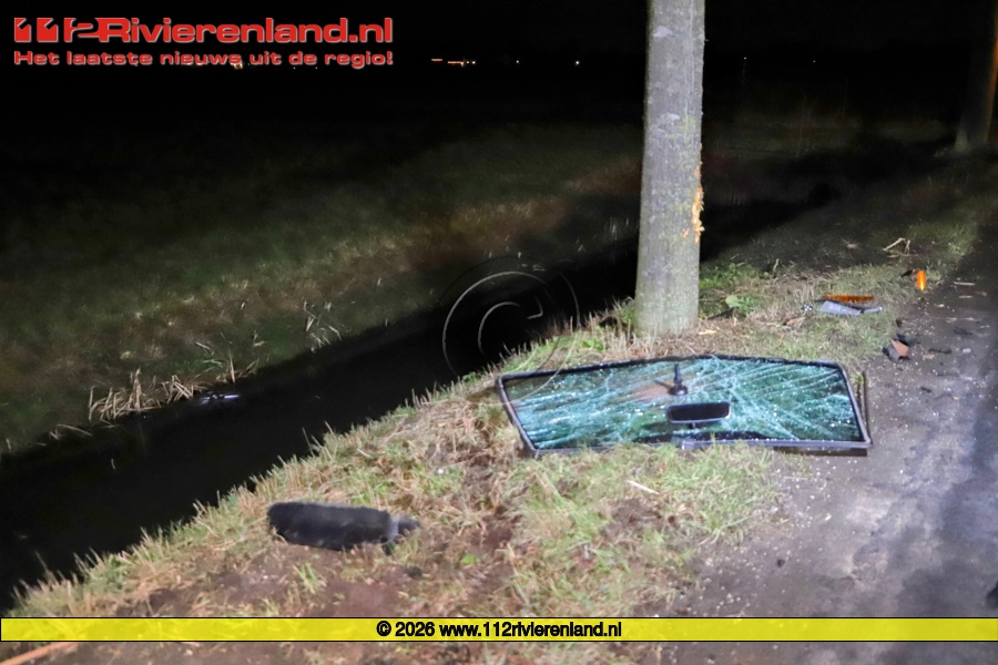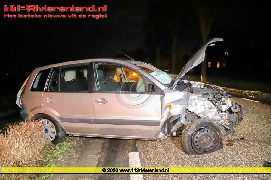 Het voertuig reed richting Echteld en bleek eerst tegen een boom te zijn gereden aan de rechterzijde van de weg. Door de klap brak de voorruit en kwamen de airbags uit. Het voertuig raakte total loss. Overal lagen in de berm brokstukken. De brandweer is ter plaatse gekomen en heeft het voertuig veilig gesteld. Al snel werd de bestuurder gevonden en is aangehouden.