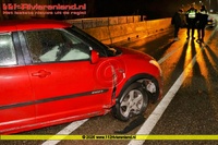 De bestuurder van een personenauto reed richting Tiel en kwam met zijn voertuig aan de andere kant van de weg tegen een betonnen wand aan. Het voertuig kwam vervolgens in tegenovergestelde richting tot stilstand. Hij raakte hierbij niet gewond. Door de klap kwamen de airbags uit en ontstond een lekke band.